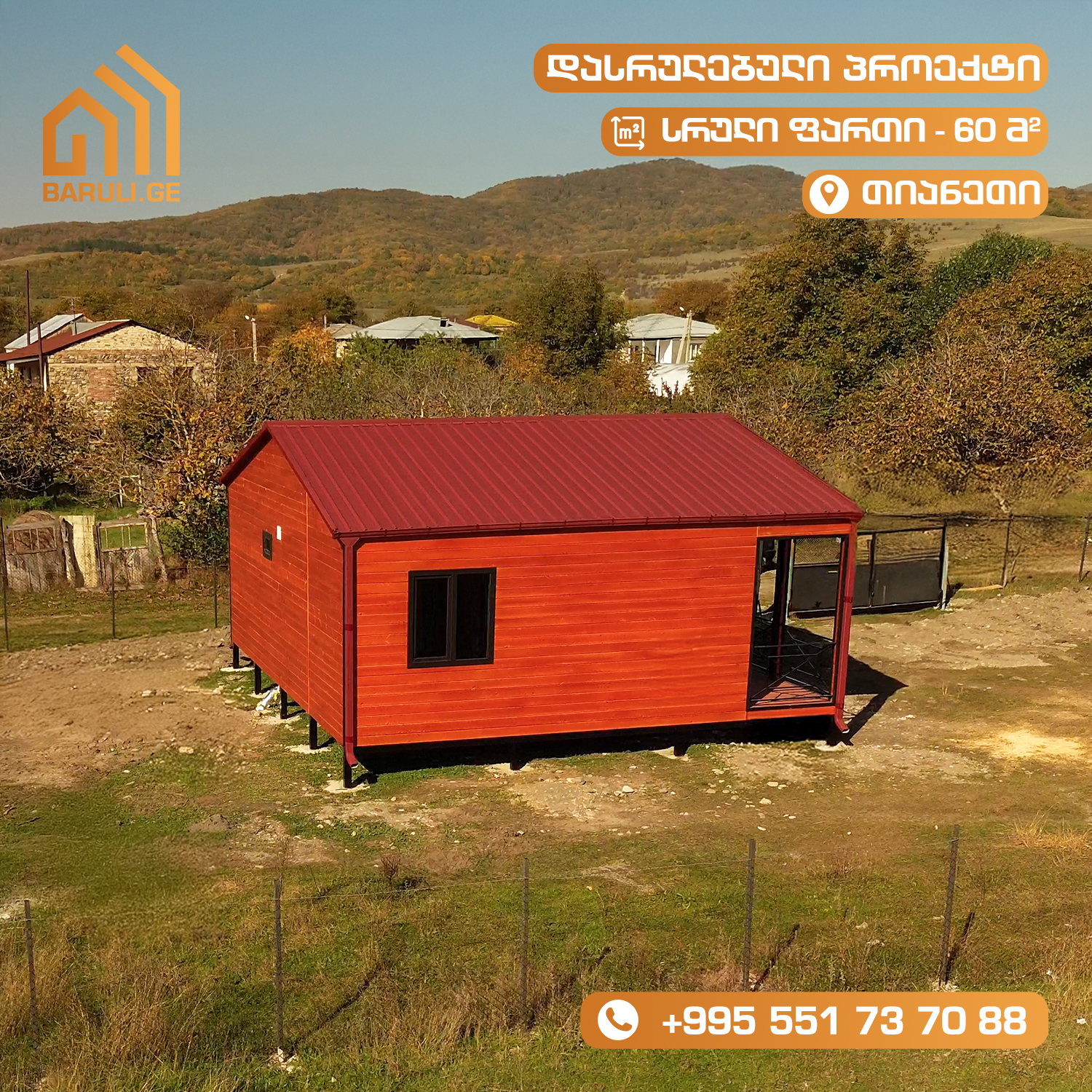 დასრულებული ეკო-კოტეჯი თიანეთში - 60 კვ.მ